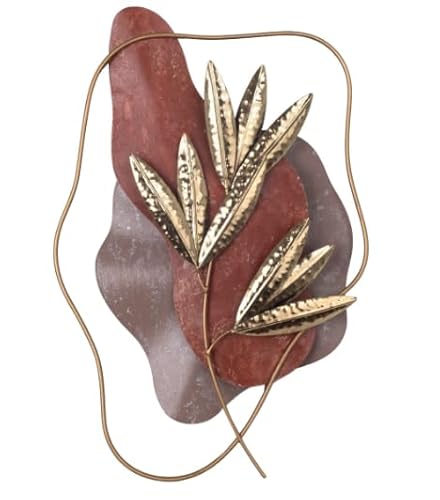 SIGNES GRIMALT Décoration Murale Métal Feuilles Dorées – Design Abstrait Terracotta et Taupe – 51 x 34 cm