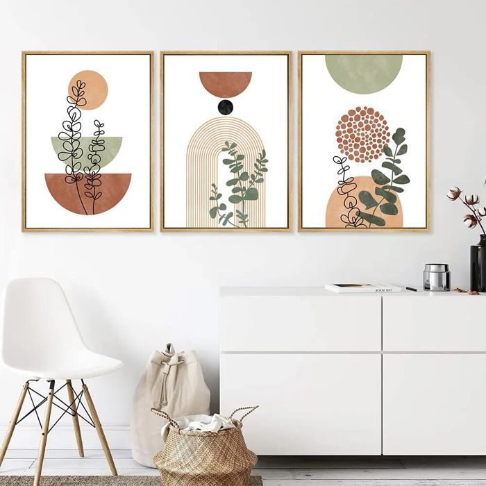 3 Pcs Boho Terracotta Géométrique Lignes Impression Sur Toile Avec Cadre Nordique Esthétique Plantes Feuille Tableau Decoration Murale Affiche Peintures Decoration Chambre Maison Bureau 30x40cmx3 Pcs