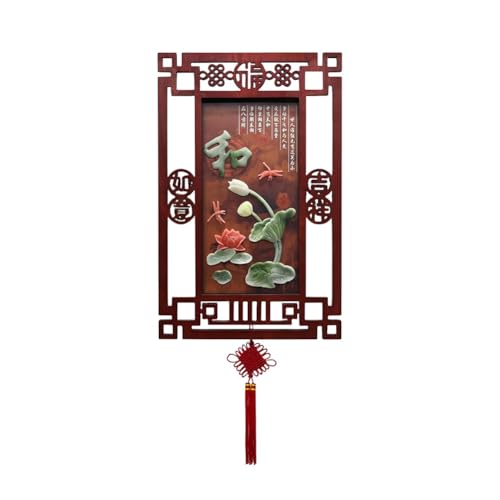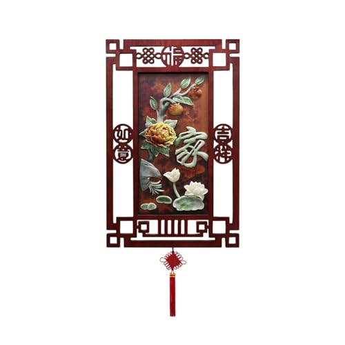 Décoration murale sculptée en jade avec cadre en bois massif - Décoration murale verticale pour salon, entrée, salle à manger