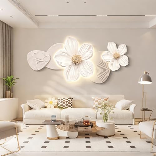 Décoration murale 3D LED, ornement floral en porcelaine cristal artisanale, décoration murale verticale avec rétroéclairage LED pour salon, chambre, entrée (C, 80 * 37 cm / 31,5 * 14,6 pouces)
