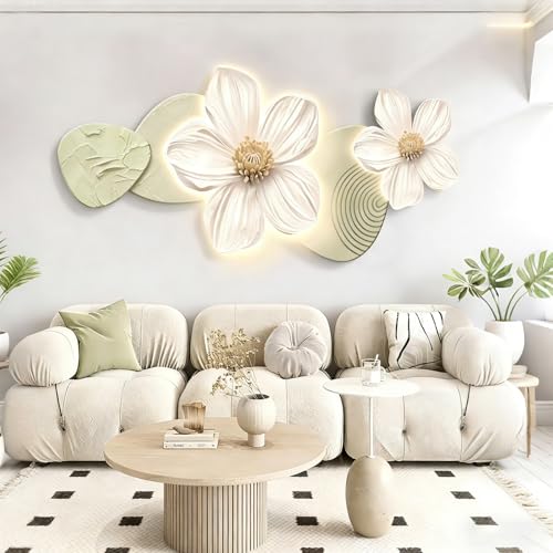 Décoration murale 3D LED, ornement floral en porcelaine cristal artisanale, décoration murale verticale avec rétroéclairage LED pour salon, chambre, entrée (L, 100 * 46 cm / 39,4 * 18,1 po)