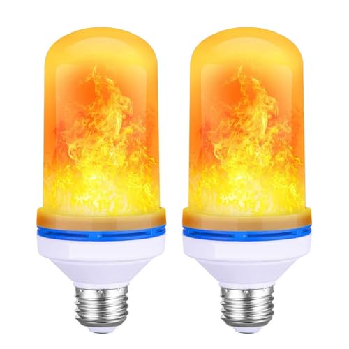 Shunfaji Ampoule de Flamme E27 9W LED, 4 Couleurs d'Éclairage, Capteur de Gravité pour Décoration de Noël Intérieure/Extérieure/Bar/Fête (Jaune x 2)