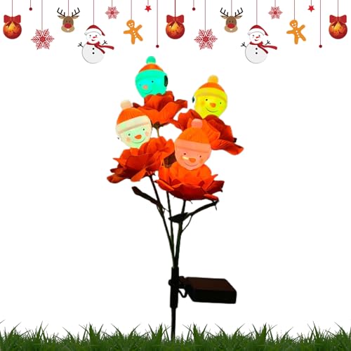 Éclairage pour Chemins - Décoration De Noël Solaire Rose & Bonhomme De Neige | Lampes De Jardin Extérieures Étanches pour Allée, Pelouse, Terrasse – LED Blanc Chaud/Multicolore