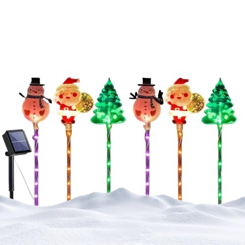 Generisch Lot de 6 décorations de Noël à énergie solaire - Décoration de Noël solaire - Étanche - Pour l'extérieur et l'éclairage des chemins - Jardin extérieur - Pelouse - Allée