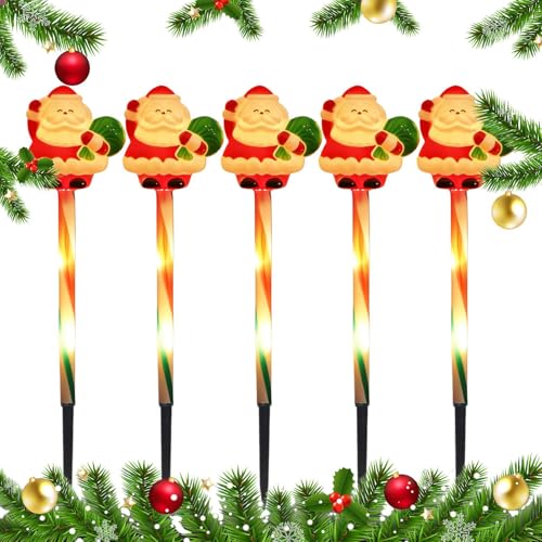 Zunetsutock Décoration de Noël solaire Lot de 5 lumières LED avec motif bonhomme de neige et Père Noël, lumières d'extérieur imperméables | Pour jardin, pelouse, chemin, porche