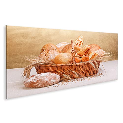 islandburner Tableau sur Toile Divers Produits de Boulangerie Frais dans Un Panier en Osier décoration de blé Cadre Affiche Poster Murale Tableaux