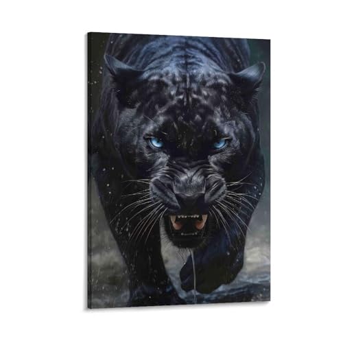 DHBANEIOK Panthère noire aux yeux bleus Murale Décoration Murale Peinture Sur Toile Impression Sur Toile Affiche Decoration Pour Chambre Et Couloir Premium 20x30inch(50x75cm)