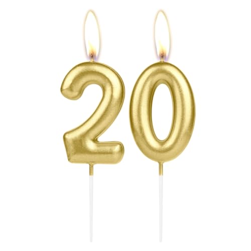 Bougie Chiffre 20e Anniversaire Dorée Scintillante, Décoration pour Gâteau et Cupcake, Anniversaire de Mariage