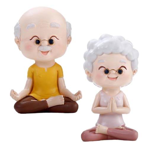 GLSTOY Lot de 2 Figurines Couple Âgé pour Décoration Gâteau Anniversaire, Statuettes Résine Compactes Légères, Ornements Créatifs Grand-Parent pour Fête et Saint-Valentin, Présent