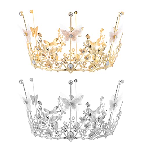 LUOZZY Lot de 2 décorations de gâteau en forme de couronne en cristal pour enfants, décoration de gâteau pour mariage, anniversaire, fête prénatale, (doré et argenté)