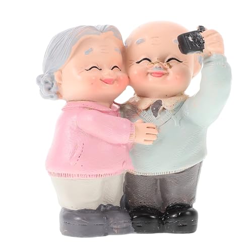 Amosfun Figurines Couple Personnes Âgées en Résine pour Décoration Gâteau Anniversaire Fête, Ornement Bureau Symbolisant Soutien Mutuel et Camaraderie