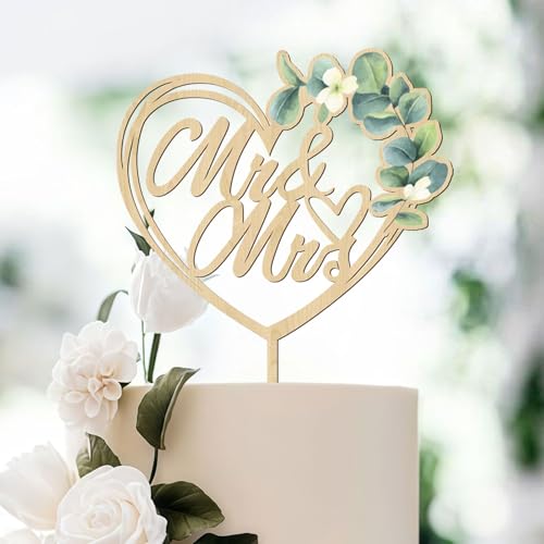 LunarCharm Mr & Mrs Cake Topper Décoration pour gâteau de Mariage en Bois, décoration de gâteau pour Mariage, Anniversaire, fiançailles, Demande en Mariage, décoration de gâteau en Forme de cœur
