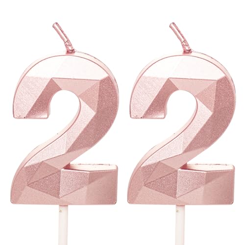 Bougies d'anniversaire 22 ans, Bougie numéro 22 en or rose pour anniversaire de femme, Décoration de gâteau pour anniversaire de 22 ans, mariage, célébration d'anniversaire, fournitures en or rose