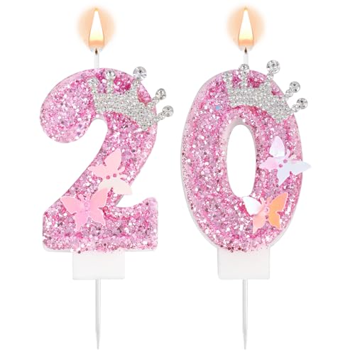 Bougies d'Anniversaire Numérotées, Roses Pailletées Couronne Papillon Joyeux Anniversaire Paillettes Princesse Décoration de Gâteau pour Mariage Anniversaire Célébration Fournitures (20)