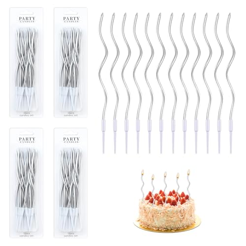 48 Bougies d'Anniversaire Torsadées, Bougies de Gâteau en Spirale Avec Supports, Décoration de Gâteau Pour Anniversaire, Mariage, Fête, Baby Shower, Accessoires de Fête Pour Gâteaux et Cupcakes