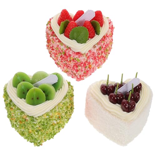 VILLCASE Lot de 3 Modèles de Gâteaux Décoratifs de Cœur, Imitation Fruits Réalistes, Accessoires Photo pour Décoration Gâteau Anniversaire et Présentation Alimentaire