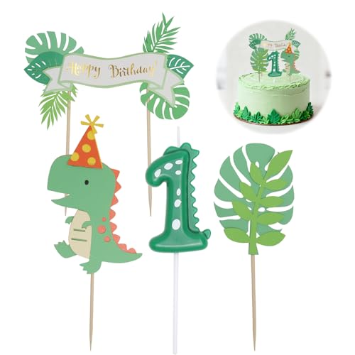 Lot de bougies d'anniversaire en forme de chiffre 1 - Bougie 1 - Vert - Décoration de gâteau pour 1 anniversaire - Décoration de gâteau dinosaure - Happy Birthday - Décoration de gâteau pour fête