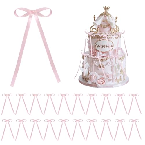 ELNX Lot de 20 Rubans à gâteau, nœuds pour décoration de gâteau, pour Anniversaire, Mariage, Mariage (Rose)
