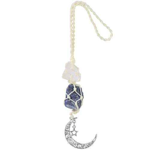 GORGECRAFT Breloques à Suspendre pour Voiture en Cristal de Quartz Naturel Lapis Lazuli avec Pendentif Lune et Étoile Pendantes Décorations pour Rétroviseur Accessoires pour Rétroviseur Décoration