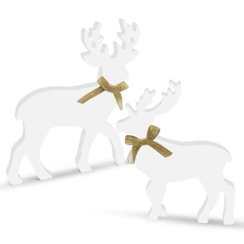 Lot de 2 décorations de Noël en forme de renne, décoration en bois, figurine de renne rustique de Noël, décorations de table d'hiver, décoration d'intérieur de Noël en forme de renne pour la maison