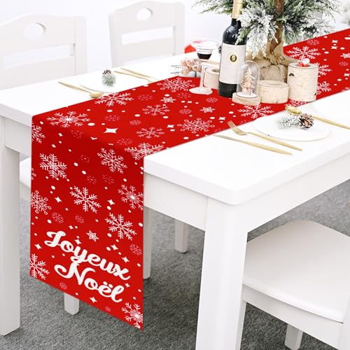 DPKOW Chemin de table Merry Christmas, Décorations de table Rouge de Noël, Décoration de Noël pour la maison