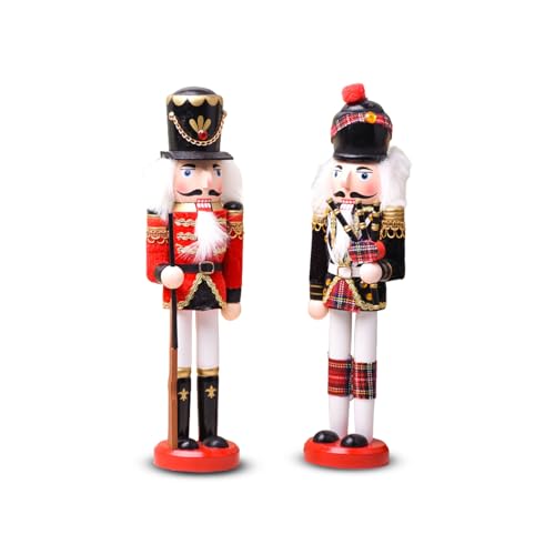 Wintem - Lot de 2 Figurines Casse-Noisette en Bois peintes à la Main pour décorations de Noël Traditionnelles et décoration de la Maison, idéales pour Table de cheminée et Cadeau de Noël Unique