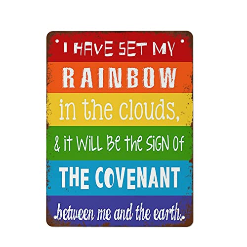 L'Arc-En-Ciel De Dieu, La Promesse De Dieu, Le Christianisme Panneau Métallique Décorative Plaques En Tôle Avec Trous Percés Metal Tin Sign Pour Atelier Café Chambre 20X30Cm