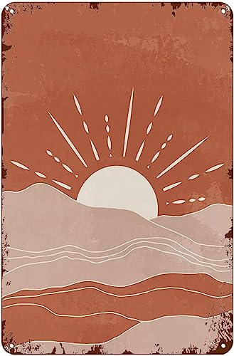 Style Bohème Vintage Soleil Plaque Métal Résistant Aux Uv Panneau Métallique Décorative Plaques En Tôle Pour Ferme Bar Cuisine 20X30Cm