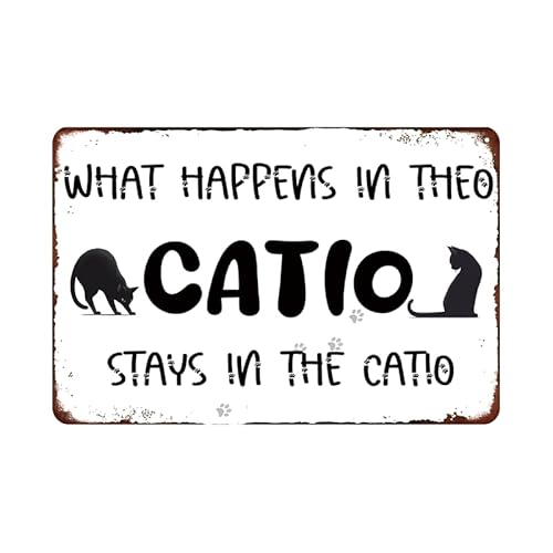 Amoureux Des Chats, Ce Qui Se Passe Dans Le Catio Reste Dans Le Catio Plaque Métallique Avec Trous Percés Panneau Métallique Décorative Plaques En Tôle Pour Atelier Chambre Ferme 20X30Cm