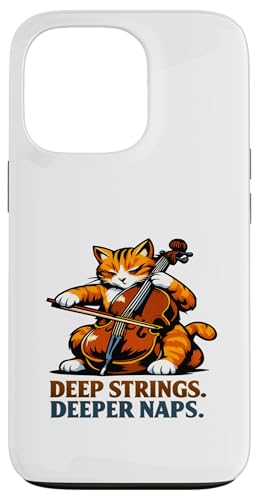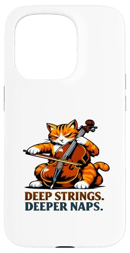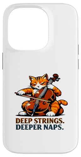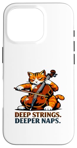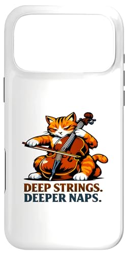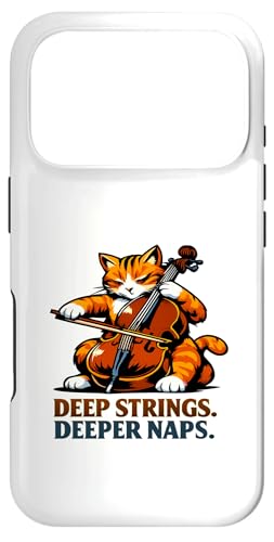 Deep Strings. Deeper Naps. Violoncelle Chat Musique Humour Coque pour iPhone 17 Pro