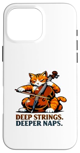 Deep Strings. Deeper Naps. Violoncelle Chat Musique Humour Coque pour iPhone 17 Pro Max