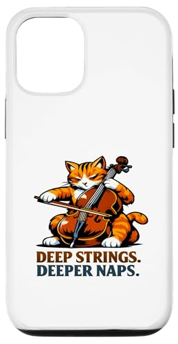 Deep Strings. Deeper Naps. Violoncelle Chat Musique Humour Coque pour iPhone 12/12 Pro