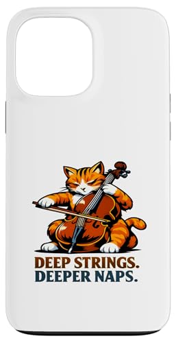 Deep Strings. Deeper Naps. Violoncelle Chat Musique Humour Coque pour iPhone 13 Pro Max