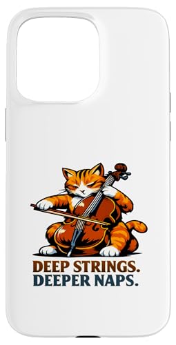 Deep Strings. Deeper Naps. Violoncelle Chat Musique Humour Coque pour iPhone 15 Pro Max