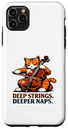 Deep Strings. Deeper Naps. Violoncelle Chat Musique Humour Coque pour iPhone 11 Pro Max