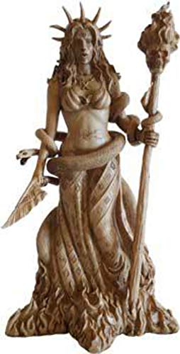 DRW Figurine Hekate déesse Grecque de la Magie, du Carrefour et de la Lune, gardienne des chemins et des Esprits en résine Peinte à la Main, 20 cm
