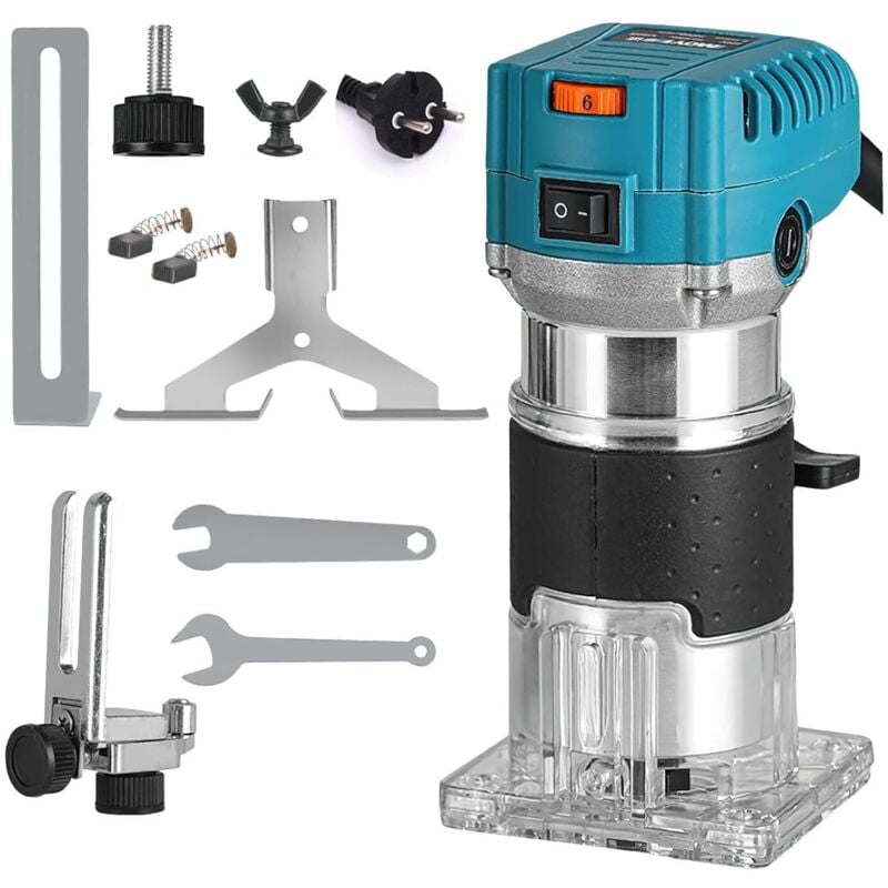 Défonceuse/affleureuse à bois de 880 W, défonceuse électrique de 30000 tr/min, 6 vitesses variables, pince de serrage de 6,35 mm, affleureuse