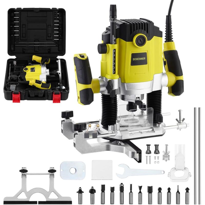 Défonceuse à Bois 1800W 10000-26000RPM DEWINNER, 3 Pinces de 6/8/12 mm, Défonceuse Affleureuse électrique avec Set de 12 Fraises à Défoncer, 7