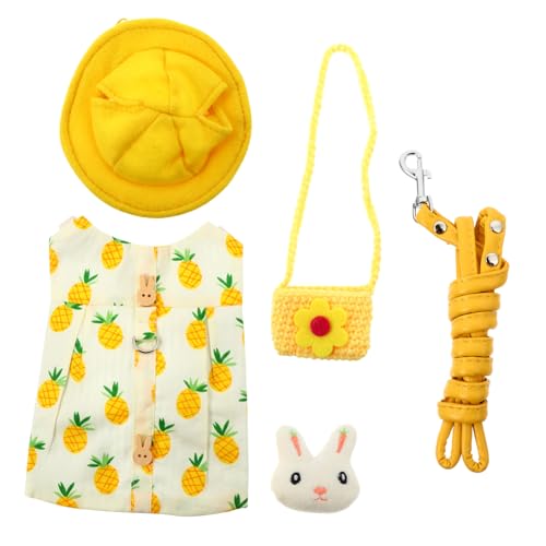 Tofficu Ensemble Harnais et Laisse pour Lapin Petite Taille, Vêtement Costume Jaune Motif Ananas, Col Chaud et Respirant, Accessoires Sécurité pour Petits Rongeurs et Lapins, Déguisement