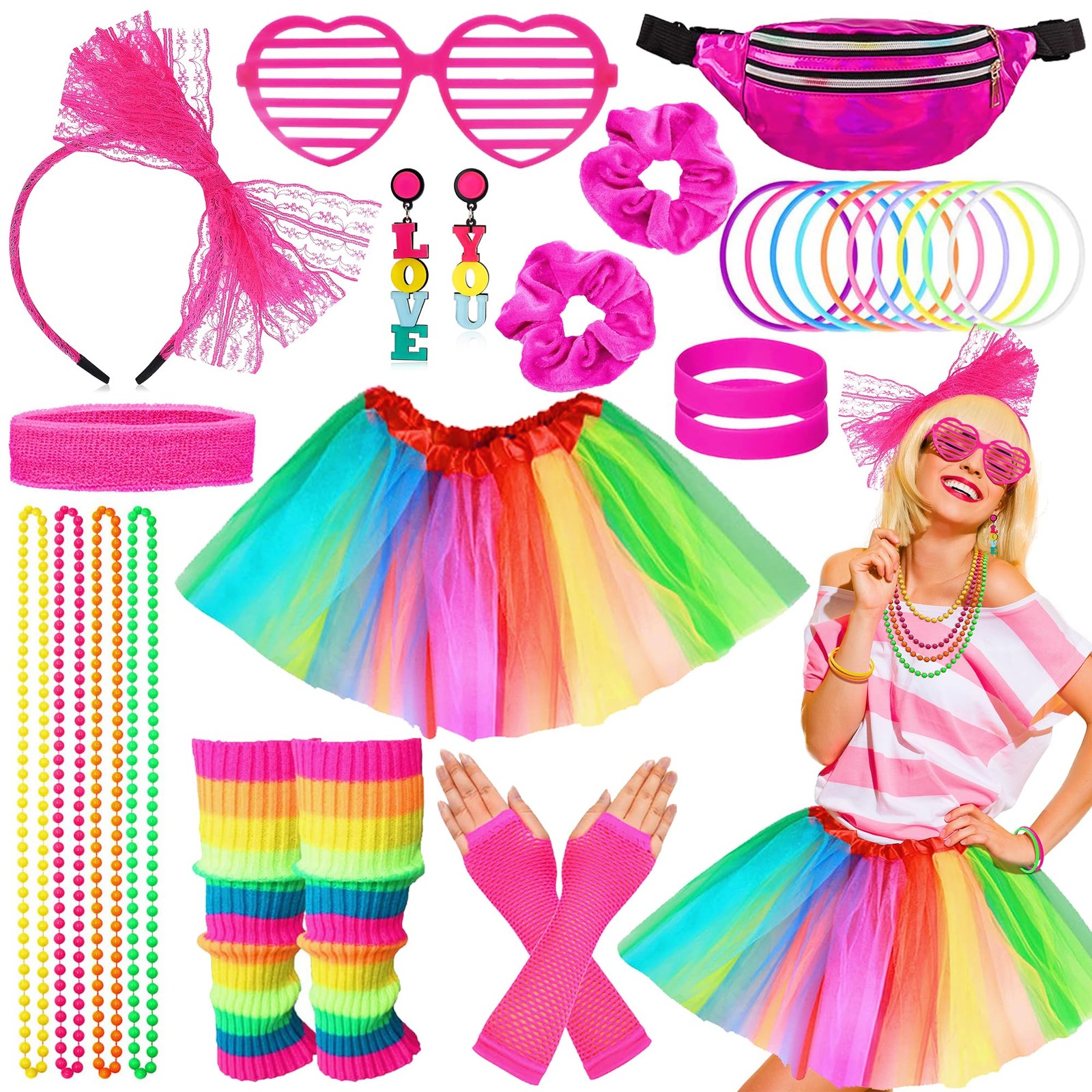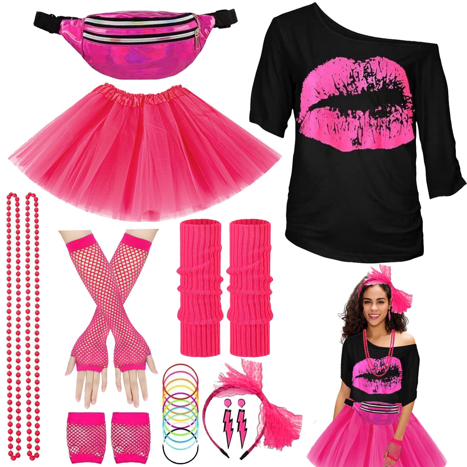 Kit Déguisement Année 80 Accessoire Femme, Disco Costume Vêtements Années 80