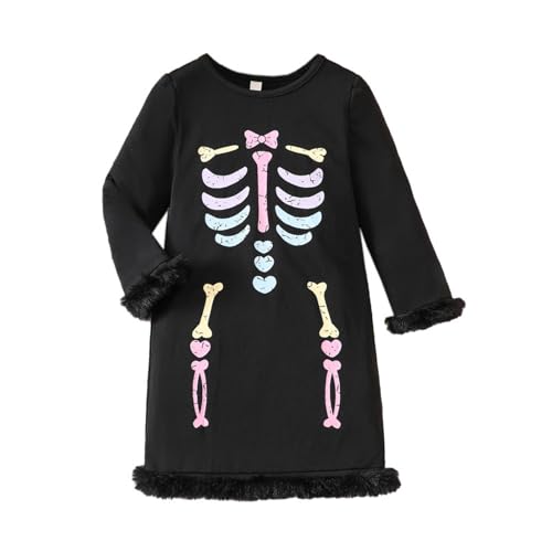 Deguisement Halloween Fille 5 Ans,Robe d'halloween à Manches Longues pour Petite Fille, Motif Squelette, Tenue de fête Chaude, Motif Animal, pour bébé et Enfant (Black, 6-7 Years)