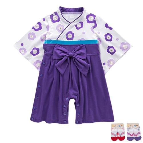 YOOCHUENG Kimono Bébé Fille Body Cosplay Bebe,Déguisement Japonais Carnaval pour Bebe Filles,Ensemble en Coton à Manches Longues pour Bébé Toddler,avec 2 Paires de Chaussettes