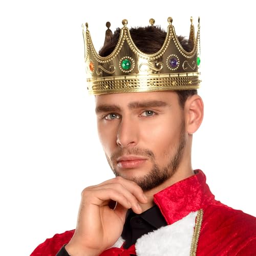 Boland 01317 - Couronne roi, or, diamètre 21 cm, pour adultes, en plastique, pierres brillantes, empereur, noble, duc, carnaval, costume, fête à thème, anniversaire, théâtre, déguisement