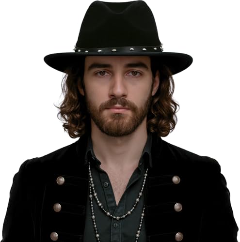 FIESTAS GUIRCA | Chapeau en Feutre Noir avec Rivets (Taille Unique) - Accessoire de Déguisement de Cowboy pour Fêtes du Far West et Carnaval - Idéal pour Adultes Unisexe - Noir