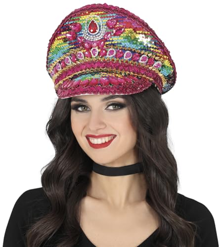 FIESTAS GUIRCA | Casquette de Police Rose avec Pierres Multicolores - Accessoire de Déguisement pour Fêtes de Carnaval et Halloween - Idéal pour Adultes Unisexes - Rose