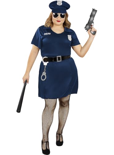 FIESTAS GUIRCA Déguisement de policière sexy pour femme - Uniforme de police court avec chapeau de policier - Costume de flic pour femme Taille XL 46-48
