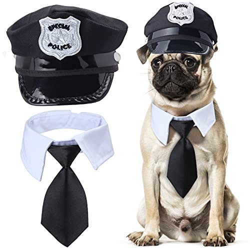 Yewong Ensemble d'accessoires de Costume de Police pour Animal Domestique - Chapeau de Police pour Chien et Chat avec Cravate et kit de déguisement pour Halloween et Noël