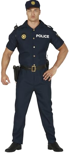 FIESTAS GUIRCA Déguisement Policier Homme - Uniforme de Police Bleu Marine avec Chapeau de Police - Déguisement Flic Homme Taille S 46-48