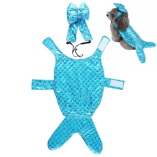 Costume de sirène pour chiot - Costume de chat avec nœud - Déguisement pour animal domestique - Haut dos nu - Costume de sirène créatif pour chats et chiots avec bandeau, tenue d'Halloween amusante