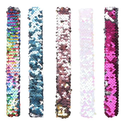 Gogogmee Lot de 5 Bracelets à Claquer à Paillettes Sirène pour Garçon et Filles, Taille Unique, Couleurs Aléatoires, Accessoires de Jeu et Décoration Amusants, pour Déguisement et Fêtes